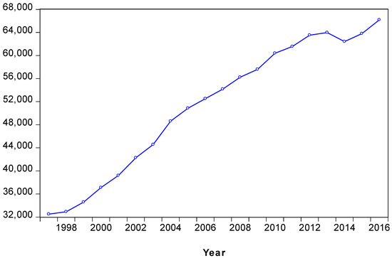 Electricity is the major energy source for residential use in Korea. In this section, we discuss the effect of the population age structure and economic factors on residential electricity demand in Korea. For this study’s econometric model, the sixteen Korean provinces represent the individual units. The time-series for each unit has seventeen annual data points, for each year from 2000 to 2016, inclusive. Though we have Korean regional residential electricity consumption data from 1990, we only use the samples from 2000, based on three reasons. First, Korean provinces have been divided into sixteen regions since 1998 (Seoul, Busan, Daegu, Incheon, Gwangju, Daejon, Ulsan, Gyeonggi, Gangwon, Chungbuk, Chungnam, Jeonbuk, Jeonnam, Gyeongbuk, Gyeongnam and Jeju). Before 1998, Ulsan was a part of Gyeongnam, thus using the relevant data from those prior periods could distort the empirical results. Second, we only have the residential electricity consumption of Ulsan since 2000. Third, in the late 1990s, Korea experienced the Asian financial crisis and the liberalization of the oil market. Oil had been the primary energy source until these two major exogenous shocks caused an economic structural change. We finally estimate the FMOLS for long-run coefficients and the panel error correction model (PECM) for short-run coefficients based on the results of the panel unit-root and cointegration tests (For the same empirical analysis strategy in the field of energy economics, see Apergis and Payne [37,38]).