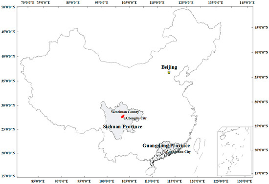 Study site: Wenchuan County (in red) and Guangdong Province.
