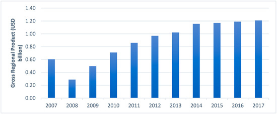 Gross regional product of Wenchuan County (2007–2017) (billion USD).