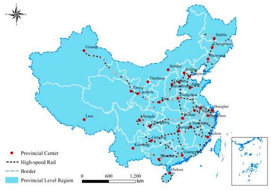 - Jiao, J.; Wang, J.; Jin, F. Impacts of high-speed rail lines on the city network in China. J. Transp. Geogr. 2017, 60, 257–266. [Google Scholar] [CrossRef]