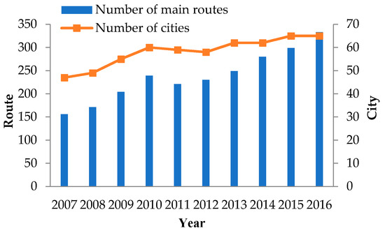 Number of CMATN cities and routes from 2007 to 2016.