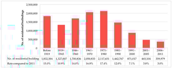 Most of the Italian residential buildings (over 74%) were constructed before 1980 (Figure 3), when only 25% of the national territory was classified as a seismic area. According to the 2011 census of the Italian national statistical institute (ISTAT), around 66% of the existing residential stock was built before 1974, that is to say, before the issue of Law 64/1974, which is the framework law for earthquake-resistant buildings.