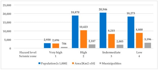 As a matter of fact, this is one of the main reasons of the seismic vulnerability of buildings: in fact, most of them have been designed to sustain gravity loads only, without considering possible seismic forces. Moreover, even those buildings erected after 1974, although in compliance with the laws in force at the time of construction, may not comply with the current seismic regulation because in recent years the seismic hazard map has been updated several times, including a great number of cities in higher risk areas. The areas with a high seismic risk cover 44% of the Italian territory (131 thousand km2) and 36% of the municipalities (2893 units). 21.8 million people live in these areas (36% of the population, in total, 8.6 million families) where there are about 5.5 million residential and non-residential buildings (Figure 4).