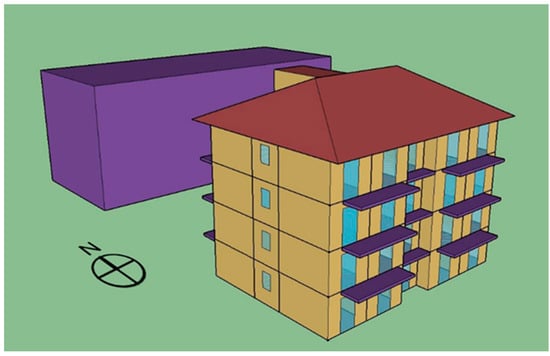 The energy performance of the selected building was assessed by means of dynamic energy simulations run with EnergyPlus v8.4, by using SketchUp (U.S. Department of Energy–Building Technologies Office, USA, 1996), as graphic interface (Figure 8).