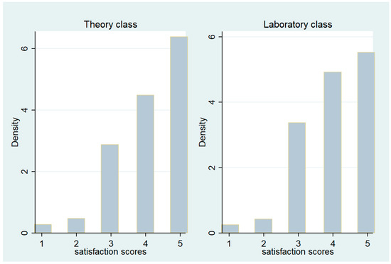 E-learning—a form of education supplemented by online/offline platforms—was found to be efficacious in Model 1. In Table 3, while the availability of hybrid online/offline courses had no effect in the case of theory classes, laboratory classes via hybrid platforms were associated with satisfaction scores approximately 0.06 higher than those of offline-only courses. These results suggest that, unlike theory classes, where instructors generally convey the course material to students in a one-sided manner, laboratory-based classes consist primarily of student participation, thus underlining the importance of an educational environment that encourages instructor–student communication. Students may be able to gain higher course satisfaction by using online platforms for preparation/review purposes in addition to Q&A activities.