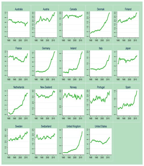 To empirically assess the relationship between green economy and employment, we considered a panel of 19 OECD countries over the 1985–2013 period. In the sample, the following economies were included: Australia, Austria, Canada, Denmark, Finland, France, Germany, Ireland, Italy, Japan, Netherlands, Norway, New Zealand, Portugal, Spain, Sweden, Switzerland, the United Kingdom, and the United States.