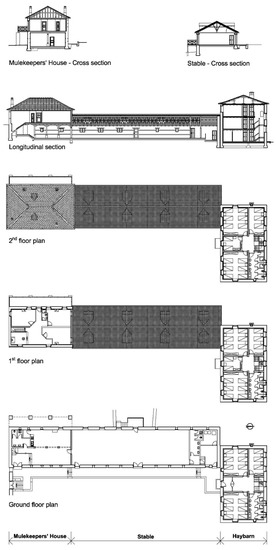 The Mulekeepers’ House is the only building that could have been classified into energy class ″G″ at the very beginning, considering the original function of the 19th century building (Table 2). After the restoration had carried out in 2005 and 2006, along with the applied measures for improving energy efficiency, the evaluated energy performance of this building was increased by two classes, from energy class ″G″ to energy class ″E″. This improvement is the result of the thermal insulation added to the peripheral surface, from the inside of the façade walls on the first floor as well as above the top floor toward the attic. Meanwhile, the façade walls on the ground floor maintained its authentic appearance—the stone coated the internal and external sides of the façade walls.