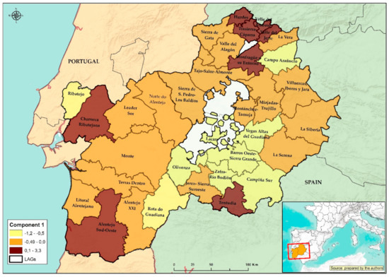 LAGs of Extremadura and Alentejo with respect to Component 1.