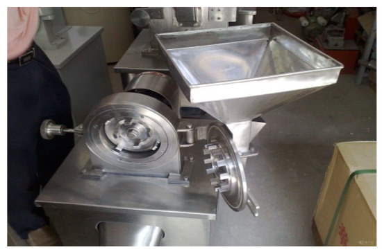 The dried corn stalk rind was cut into strips with a size of 0.5–1.5 × 3–5 cm, and then crushed using a WKF250 crusher (Figure 6). Next, 50 g comminuted corn stalk fibers were weighed and placed in a high-speed multifunction crusher (Figure 7) for further comminution for a fixed time.