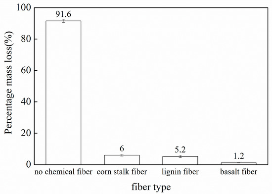 The lengths of the three kinds of fibers are given in Table 10 and were in the order of basalt fibers > corn stalk fibers > lignin fibers. The lengths of the fibers will directly affect the strength of the asphalt mixture and its workability during construction mixing. If the lengths of the fibers increase, the strength of the asphalt mixture will also increase. However, if the fibers are too long, they will be easily knotted during the mixing process of the asphalt mixture, and an even distribution and dispersibility of the fibers will be difficult to achieve. The fibers in this case will not only fail to enhance the strength of the asphalt mixture, but also affect the workability of the mixture. The melting temperatures of the three fibers exceeded 200 °C and were thus higher than the usual maximum temperature (180 °C) for the mixing of the asphalt mixture. Therefore, these fibers meet the requirements for asphalt pavement.