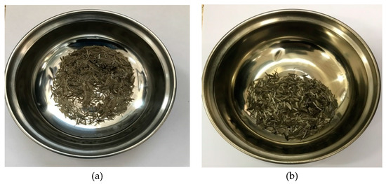 A porcelain plate was weighed on a scale, and then a 10.0 ± 0.1 g fiber sample was placed on the porcelain plate to be weighed. The porcelain plate (including the fibers) was placed in an oven and heated at 105 ± 5 °C for 2 h, and then removed and placed in a desiccator to cool. Finally, the weight of the porcelain plate (including the fibers) was measured. The water content of the fibers was calculated as follows: