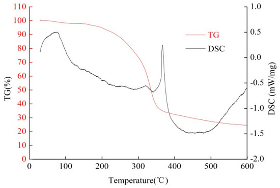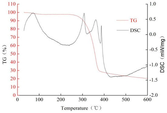 An STA 449C TG-DTA/DSC integrated thermal analyzer produced by Netzsch, Germany, was used for thermogravimetric analysis of corn stalk fibers before and after treatment with the sodium hydroxide solution. During the analysis, the heating rate was 10 °C/min in a nitrogen atmosphere, the test temperature range was 10–600 °C, and the weight of the sample was about 15 mg.