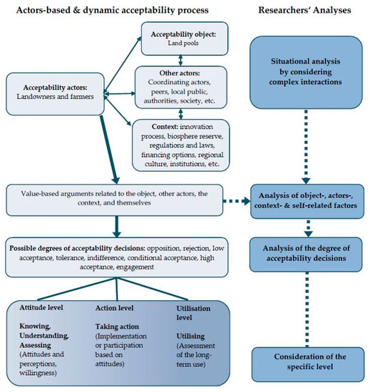 Furthermore, acceptability implies actors’ active examination of the acceptability object within its context and their interactions with other actors to make a decision using rational insight and value-based internal conviction [