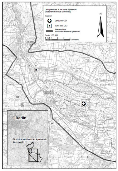 CS1 and CS2 are located in the biosphere reserve “Spreewald” (Germany) and are part of zone II, which is known as a buffer zone (or maintenance zone). At the same time, the case study areas are nature conservation sites and Habitats Directive Sites of Community Importance (Flora Fauna Habitat areas), with established use and cultivation restrictions [