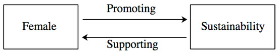 In terms of the relationship between women and sustainable development, women and sustainable development promote each other and influence each other, as shown in Figure 1. On the one hand, promoting women’s development and gender equality are inevitable choices for sustainable development. Sustainable development is inseparable from women’s participation. The level of development of women will not only affect the coordinated development of society, it will also affect the way in which generations can achieve sustainable development. On the other hand, sustainable development further protects the legitimate rights and interests of women. Women will also develop themselves in the process of participating in sustainable development.