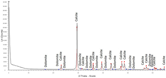 The studied marble has a very similar composition as other marbles (e.g., Carrara marble), [43] very important in cultural heritage and the possible implications of our results in terms of conservation-restoration of the architectural heritage. Crystal White marble has a 51.91% of Ca (expressed as CaO) and a loss on ignition of 42.60%. From ICP-MS data. The largest difference observed with Carrara marble is related to the content of dolomite, as the Crystal White marble is slightly more enriched in this phase than others [43]. This is noticed in the X-ray powder diffraction analyses, where traces of dolomite (magnesium carbonate) have been noticed (Figure 1). In the case of the depth, the most significant variable (very small pValue) was the laser power; regarding width, the most significant one was the intercept of the linear fit, which is directly related to the beam spot. The next significant contribution to the width was again the laser power.