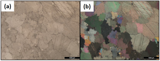 Petrographic micrographs of the Crystal White marble. (a) parallel-polarized light, PPL. (b) cross-polarized light, CPL.
