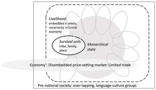 Taking a cue from both Polanyi [9] and the early Herman Daly [40], the notion of Livelihood developed here is construed as a foundational domain—necessary to reign in both State and Market, and to create a three-legged political economy for an alternative modernity. Only livelihood offers the possibility of moving toward a low energy/material throughput version of modernity. But at the same time, the politics of livelihood potentially destabilizes ’business as usual’, left-right politics.