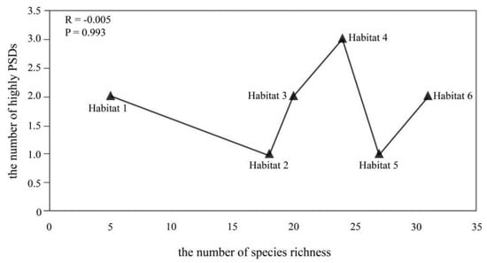 3.3. Relationship between Biodiversity and the Number of Eight PSDs