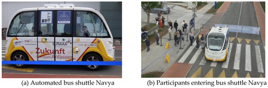 A semi-structured interview of 44 passengers who travelled a predefined route in a driverless shuttle bus in Finland showed that a vehicle without a human driver was not considered as a problem for the passengers. Passengers felt safe and secure in the AV. Passengers’ perceptions were similar to when travelling by a metro or a tram, where there are no or very rare interactions with a driver. The results showed that people are much more intolerant of accidents caused by AV than by humans. The study also revealed that positive attitudes towards AV can be supported by giving people possibilities to try AV in a safe, real-life environment [25]. The next study in a form of semi-structured interviews among 60 participants in Germany showed the growing dominance of multimodal mobility and the declining role of private cars in everyday mobility in dense urban areas. This shows a potential for alternative mobility solutions including car-sharing models [55].