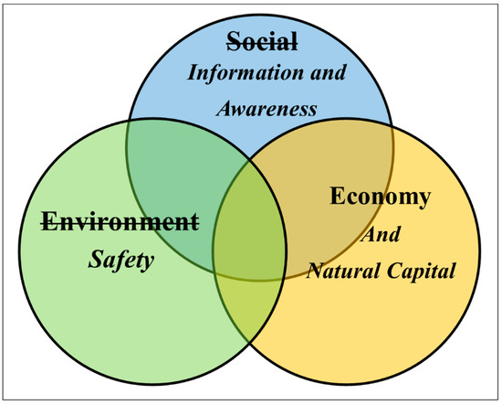 This study proposes the use of a multidisciplinary approach to better understand the sustainability and resiliency issues arising in mountain communities facing geohazards and to identify information gaps that need attention. Our proposed framework encourages communities to be both sustainable and resilient [14]. The typical framework for sustainability evaluates social, economic, and environmental factors in order to assess sustainable development. In this study, we adapted the traditional sustainability framework and tailored it to Maolin District, using factors that reflect the local conditions in the communities there. Our proposed framework consists of three major criteria: (1) safety; (2) information and awareness; and (3) economy and natural capital (Figure 2).