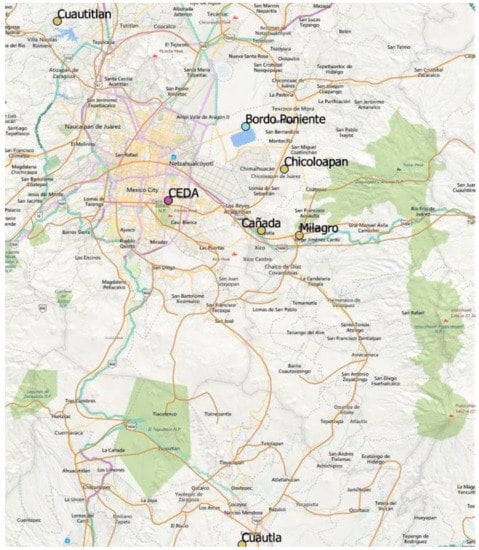 Location of the landfills and the composting facility Bordo Poniente and CEDA in Mexico City.
