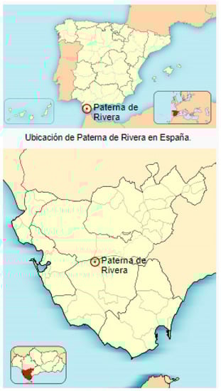 Location plans of Paterna de la Rivera (Cádiz, Andalucía, Spain) (Source: Wikipedia).