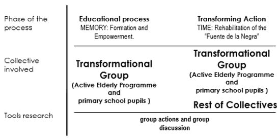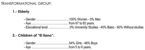 Specifically, and following this guideline, this project initially concentrated on the work of two groups in this locality, which structure the transformational group. The intergenerational and gender approach the group has reached, as well as the added value that these aspects mean for this research, is remarkable: