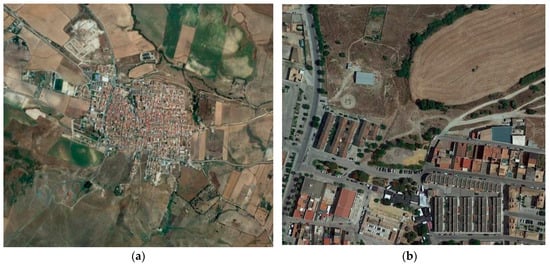 Both in the educational process and in the choice of this group of elderly women as the original and main underpinning of the project, another essential aspect was taken into consideration when creating, or recovering, an already existing affective link, and it is the role of memory, as the recall of a time of coexistence and attachment to a place, by these women. Specifically, and as we shall see below, thanks to the recall of the affection towards a particular place, the participants chose as a space to initiate the transformation and enhancement of a natural area at the time not only degraded, but also forgotten and overlooked by the majority of the inhabitants of the locality: La Fuente de la Negra, which location and geographical characteristics can be seen in Figure 8a,b.