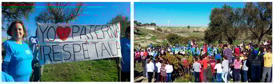 Included in these activities we should like to highlight a particular detail, and this was the appearance at Fuente de la Negra some months after the intervention of a series of acts of vandalism. Faced with this, the groups involved in the restoration of this space organized a demonstration condemning these acts on 17 November. More than 600 people marched behind a large banner on which could be read the slogan “I love Paterna, respect her” (Figure 15).