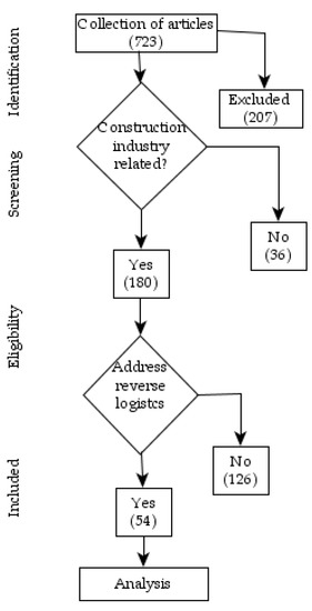 Therefore, it is high time to examine the focus of reverse logistics implementation in the construction industry. The aim of this research is to review the current reverse logistics-related literature and investigate the actual focus of reverse logistics practices. Firstly, a data mining tool was used for a comparison between non-construction industry and construction industry literature, and then a content analysis was conducted for further analysis.