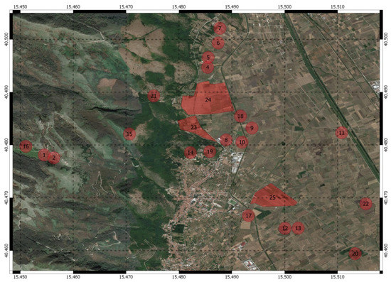 The different indices used (Table 2) well fit with the available bibliography. The AOIs are located inside or on the borders of the municipality of Sant’Arsenio.