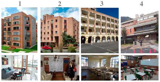 The above problem in the context of Colombia is studied here through an inductive methodology, where it is outlined based on existing literature and preliminary studies and then analysed through fieldwork. Four projects by the authors that involved fieldwork were examined here, two of them in apartment buildings and two in school buildings (Figure 4 and Table 1). These projects were chosen due to their similarities in terms of geographical, climatic and cultural context. The methods used for data collection and analysis were equivalent and the resulting information was comparable. Studying two different building typologies highlighted the need for customisation according to the building use and occupants´ characteristics. The projects were studied at different times of the year and in different years. This allowed a broader vision of the problem and presented opportunities for the refinement of methodologies.