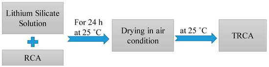 Treatment process for RCA with lithium silicate solution to prepare treated RCA (TRCA).
