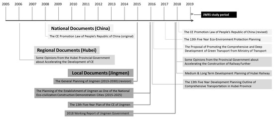 At the local level, a handful of documents which were related to the JWRS case were reviewed. In 2015, a general planning document for Jingmen was issued for the active period until 2030. In this plan, Jingmen called for sustainable development plans and referred to the protection and rational use of natural resources (water, land, energy, etc.). It also stressed on the need to realize a sustainable transport system, which means an efficient and complete set of transportation connections and facilities. CE was mentioned to a far lesser extent, only as a means of facilitating energy savings and emission reduction.