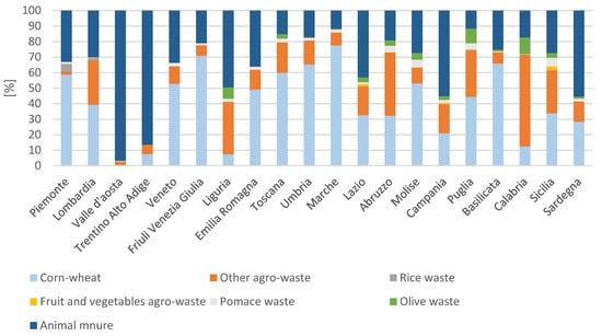 | Corn and Wheat [t × 1000] | Other Agro-Waste [t × 1000] | Rice Waste [t × 1000] | Fruit and Vegetables Waste [t × 1000] | Pomace Waste [t × 1000] | Olives Waste [t × 1000] | Animal Manure [t × 1000] | Total [t × 1000] | |