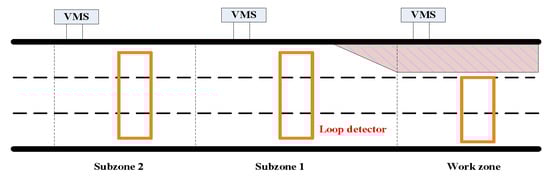As a result of rapid economization and motorization, urban roads and their ancillary facilities have to be maintained regularly in order to suit the increment of traffic demand. Regular maintenance tasks have been proved as an effective method for keeping road service at a good level. As mentioned below, maintenance projects are referred to as work zones. It should be pointed out that work zones often necessitate the closure of one or more traffic lanes to protect the safety of the workers, resulting in serve traffic congestion during peak hours [,,]. Consequently, it is critically important to optimize and implement a reasonable work strategy for the urban work zone.