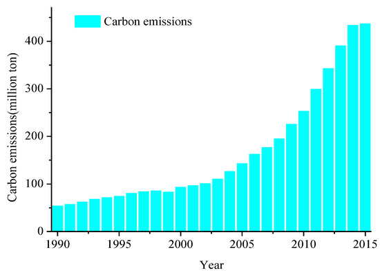 The Intergovernmental Panel on Climate Change (IPCC) in its Fifth Assessment Report (AR5) confirms that the concentration of greenhouse gases has significantly increased since the Industrial Revolution, which accelerated the speed of climate change primarily characterized by global warming [1]. This will bring much more risks on the ecological safety, the food security, the safety of water resources, and so on, which seriously affect the development of the society and economy [2]. It is widely acknowledged that the significant increase in greenhouse gas concentrations is mainly due to the energy-related carbon emissions caused by human activities [2,3]. With the topic of global warming increasingly becoming a key environmental, political and economic issue, in order to mitigate the risks of global warming, the international community has made great efforts to reduce carbon emissions [4]. As an emerging market, though simultaneous development and accelerating industrialization, informatization, agricultural modernization, and urbanization, due to its long-term growth mode of high consumption, high pollution and low output, China has become the country with the largest carbon emissions [5]. In 2006, Chinese carbon emissions surpassed the United States of America (USA) and became the world’s largest emitter [4]. In 2015, China accounted for 28.65% of the world’s total carbon emissions, exceeding the sum of the USA (14.93%) and the European Union (9.68%), which was ranked second and third in the world, respectively (Global Carbon Project. http://www.globalcarbonatlas.org/en/ CO2 emissions). With this, China has incurred huge attention from the world, which posed great international political pressures on China. In face of this situation, China pledged at the Copenhagen Climate Summit to increase the percentage of renewable energy in energy consumption structure to 15%, and to cut 40–45% of the energy intensity in 2020 when compared to the 2005 levels. Moreover, China promised at the Paris Agreement to increase the percentage of renewable energy in energy consumption structure to 20% and to cut 60–65% of the energy intensity in 2030 when compared to the 2005 levels, and make the best efforts to peak carbon emissions around 2030 [6]. How to realize this promise without compromising the socio-economic development has become an important issue that needs to be solved urgently. Therefore, empirical analysis and projection on carbon emissions are useful for the government to provide a theoretical and scientific basis for the sustainable development of low-carbon economy [4].