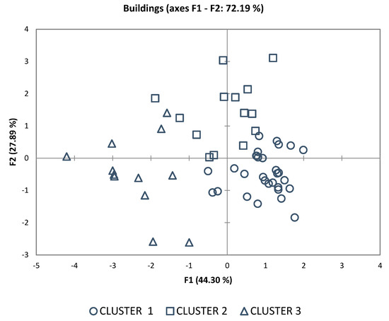 - positive for a single parameter (3/54 on the sample total), found either for δHW1 (41) or for δHL1 (9-see abacus in Figure 10), therefore dissonance with respect to cluster 1 is due to a perception of the building very slender in the landscape;