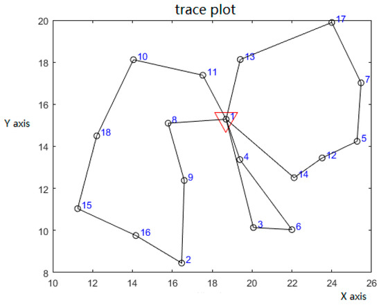 Based on the above, a steel distribution center in Shanghai and 18 shipyards around it are taken as an example to analyze. Their locations are sorted out by a Baidu Map, and customer requirements and acceptable time windows are known. The IWD and IIWD algorithm designed in this paper are used to solve the problem. The distribution center uses six-axle trucks for distribution service. According to the national truck load standard, the rated load of six-axle trucks is 49 tons. Specific data are shown in Table 5 (serial number 1 indicates distribution center point), and initialization parameters are the same as seen in Table 3.