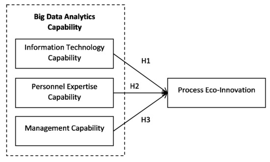 In addition to information technology, having the ability to manage and utilize the big data can be a significant contributor to organizational performance, as firms that utilize big data analytics could experience an increase in their performance [119]. In fact, management capability could positively support performance through influencing the innovative ability of firms, together with its processes, products, and services [120,121,122]. Another reason for the upsurge in performance could be stemmed from the application of analytics to the organization’s innovation process [111]. The applicability of big data analytics to the eco-innovation process of the organization could be useful in decision making [123], helping to determine the firm’s eco-innovation strategy and configuration [124]. One practical example of this potential usage of big data in decision making and strategy is its application to eco-product lifecycle management [109] and new eco-product development processes [125]. Despite these facts, research has also noted the need to infuse a multi-faceted approach in mapping capabilities to sustainable value creation [79]. As a result of the above, we propose the following hypothesis: