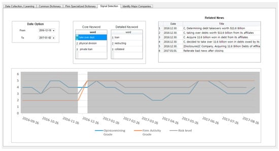 Next, signal detection is performed based on the derived firm activity and opinion mining grade. As shown in