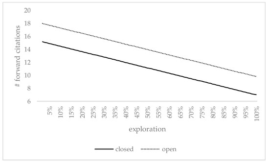 The results are also shown in Figure 2, where it is possible to observe that, for any level of exploration, the technological quality expected for patents developed in an open context was higher than that in a closed one.