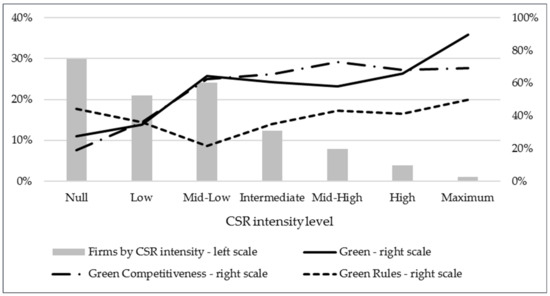 Indeed, the relationship between CSR and environmental responsibility remains unclear. Most authors focus on large firms where environmental responsibility may be due to regulations and CSR compliance may also be required by formal reporting. Instead, small firms might pursue socially and environmentally responsible behavior in informal ways, which go unreported [5,6,7,8]. Moreover, CSR is often measured through a binary variable (e.g., Cuerva et al. [9], Kesidou and Demirel [10]), disregarding how a firm’s CSR intensity may affect its environmental policy too. Finally, studies on the relationship between environmental responsibility and CSR seem to be entirely missing for Italy.
