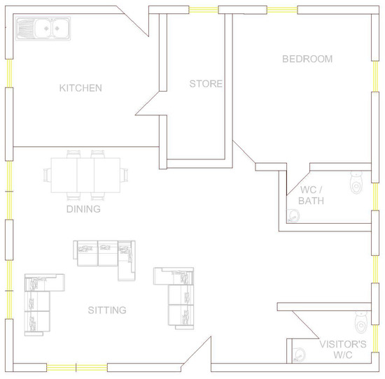 For the purpose of this study, a low-income household is considered for HRES electrification. Usually, a modest low income-household consist of a living-room, a bedroom, a kitchen and one or two restroom (Figure 5).