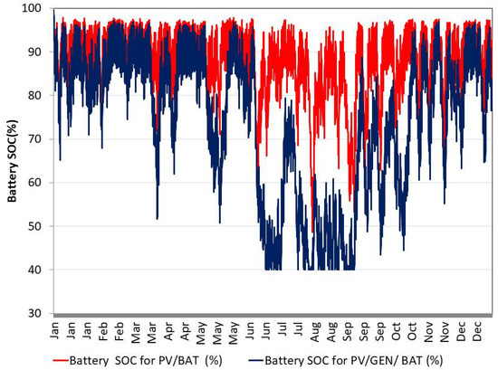 There are usually situations where consumer’s energy demand requirements would not be met by the proposed energy system. This may be due to insufficiency in energy resources. Such circumstance will led to a loss of power which in turn result in consumer’s load not been served at such moment. This study uses a loss of energy probability (LOEP)—Equation (5) and a availability (Equation (6)) indices to evaluate the reliability of the proposed systems.
