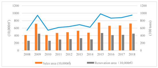 The real estate market in China has substantially developed due to the rapid development of urbanization. In recent years, there has been fast-growing sales of commercial housing. As a result, increasing attention has been paid to the living quality of and the renovation of houses. According to the statistics provided by the China Building Decoration Association (CBDA), the area of housing sales and the renovation output value increased very fast in recent years. What is more, the total value of residential renovation projects escalated from 1140 billion yuan (about US$ 165 billion) in 2005 to 2100 billion yuan (about US$ 305 billion) in 2010, and then to 3940 billion yuan (about US$ 573 billion) in 2017 [1]. These data illustrate the increasing trend in renovation of residential buildings in China.