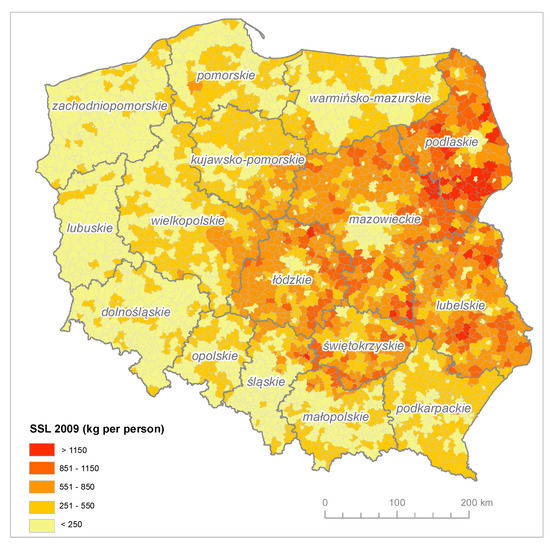 SSL dataset modelling results in communes per capita (kg per capita).