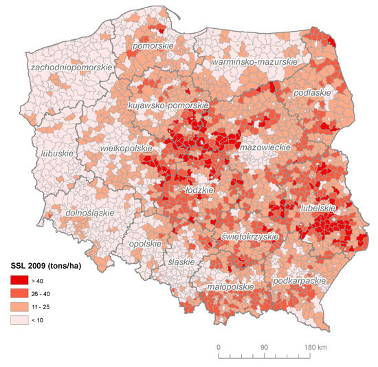 SSL dataset modelling results in communes for all provinces (tons).