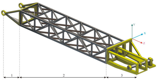 The boom of the ERc 1400-30/7 bucket wheel excavator is a spatial, load-bearing structure that can be divided into three sections (Figure 2):